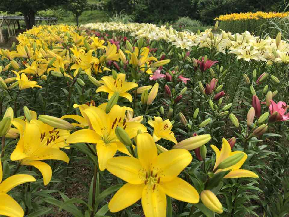 昭和55年(1980),萩生地区の西山のスキー場の夏期利用にと,地区青年団体がユリの花を植栽したのを機に,「いいでゆりまつり」が始まった。平成15年(2003)6月には7ヘクタール,150品種,50万本の東日本最大級の「どんでん平ゆり