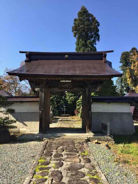 に鏡があり,真下から眺めると山門に描かれた絵の謎が解ける。山門の絵は,大谷勤先生(やまがた芸術倶楽部講師)によるものである。仁王像の姿が見える人